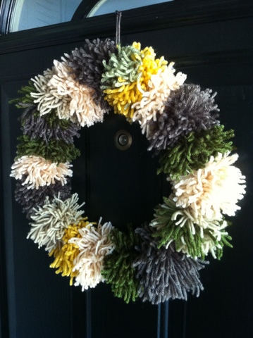 Here's what my helper, Miss Pretty Pretty, and I came up with today. We made pom-poms and attached them to a wreath form that we had in the basement. All crafty folks have one of those just laying around, right?